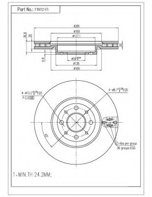 - Εξωτερική διάμετρος [mm]: 281 mm