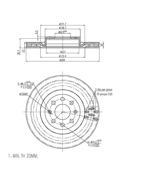 - Πάχος δισκόπλακας [mm]: 22 mm
