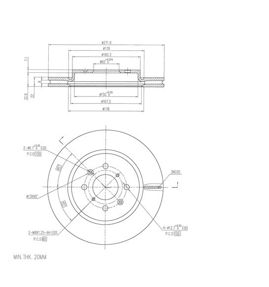 - Πάχος δισκόπλακας [mm]: 22 mm